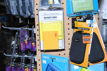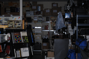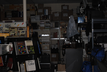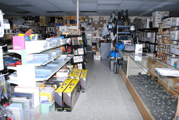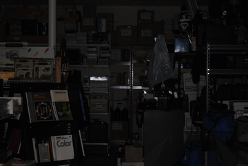 The following is a series of pictures taken here at Marshall's Camera to show the use of such a flash. The camera used is a Nikon D3000. The lens used is the Nikon 18-55mm lens that comes normally with the kit. The lens is set at 55mm for most of the shots. The first five shots were taken with the on-camera flash. The camera automatically set the shutter speed to 1/60 and the lens opening to 5.6 which is the largest opening for this lens when it is set to 55mm focal length. The ISO setting was changed with each shot starting with 100 and then set to 200, 400, 800, and 1600 on the fifth shot. The far wall is about 40 feet away.